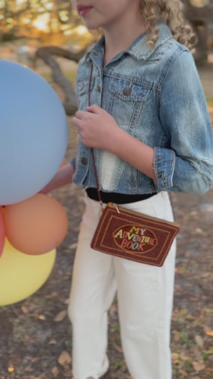 This beaded Purse is a whimsical nod to one of our most beloved films. Designed to look like the iconic scrapbook from the movie, this crossbody bag features intricate beadwork, bold lettering, and a rich brown “storybook” palette. It’s finished with a long rope-style strap and a secure zipper closure — perfect for holding your little explorer’s treasures or gifting to someone with a heart for adventure.