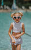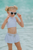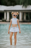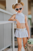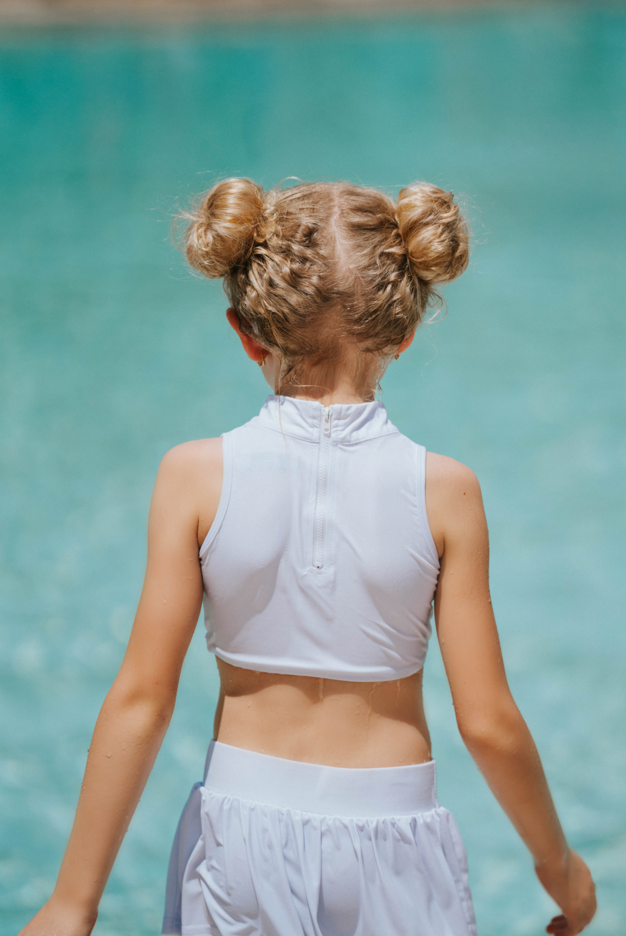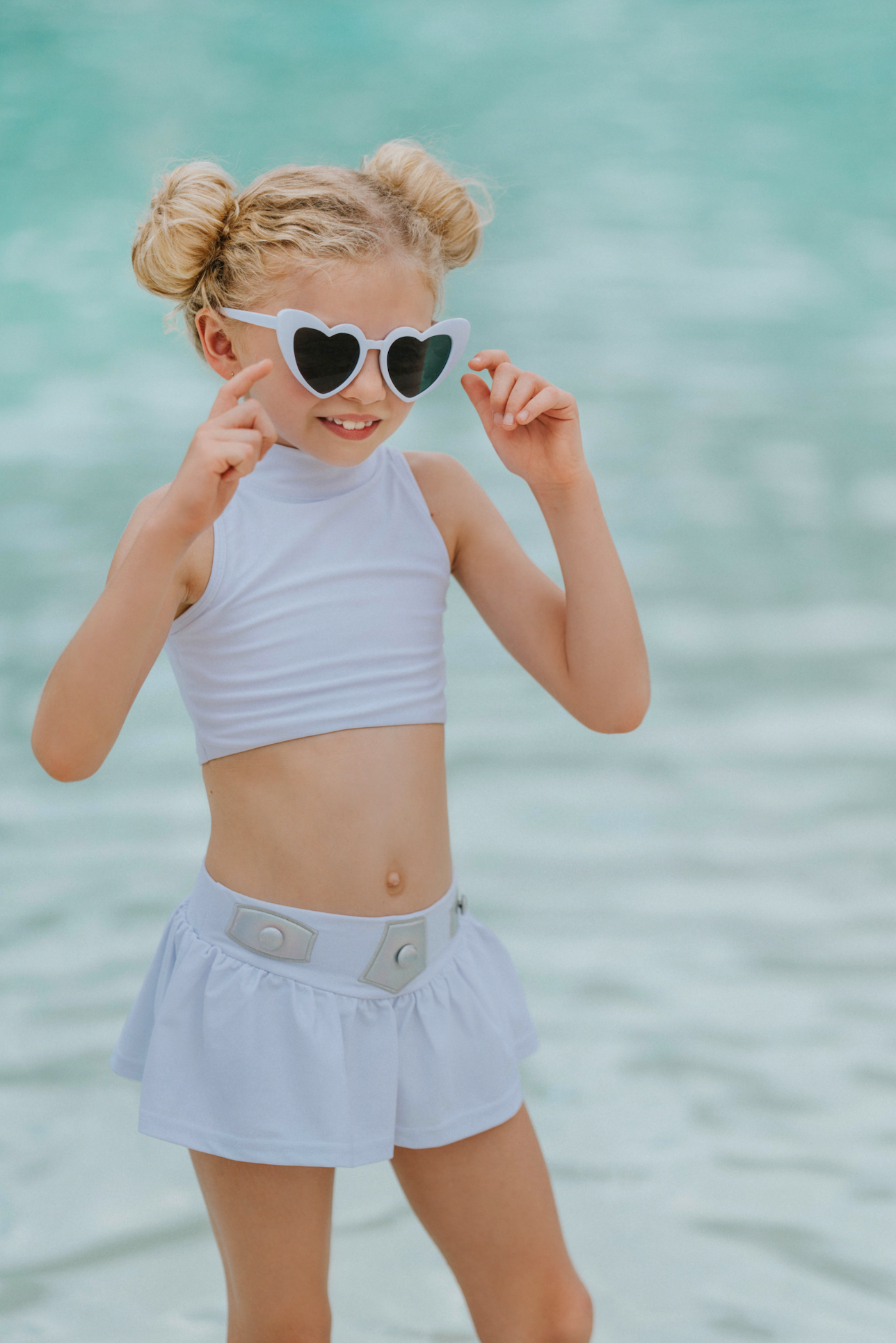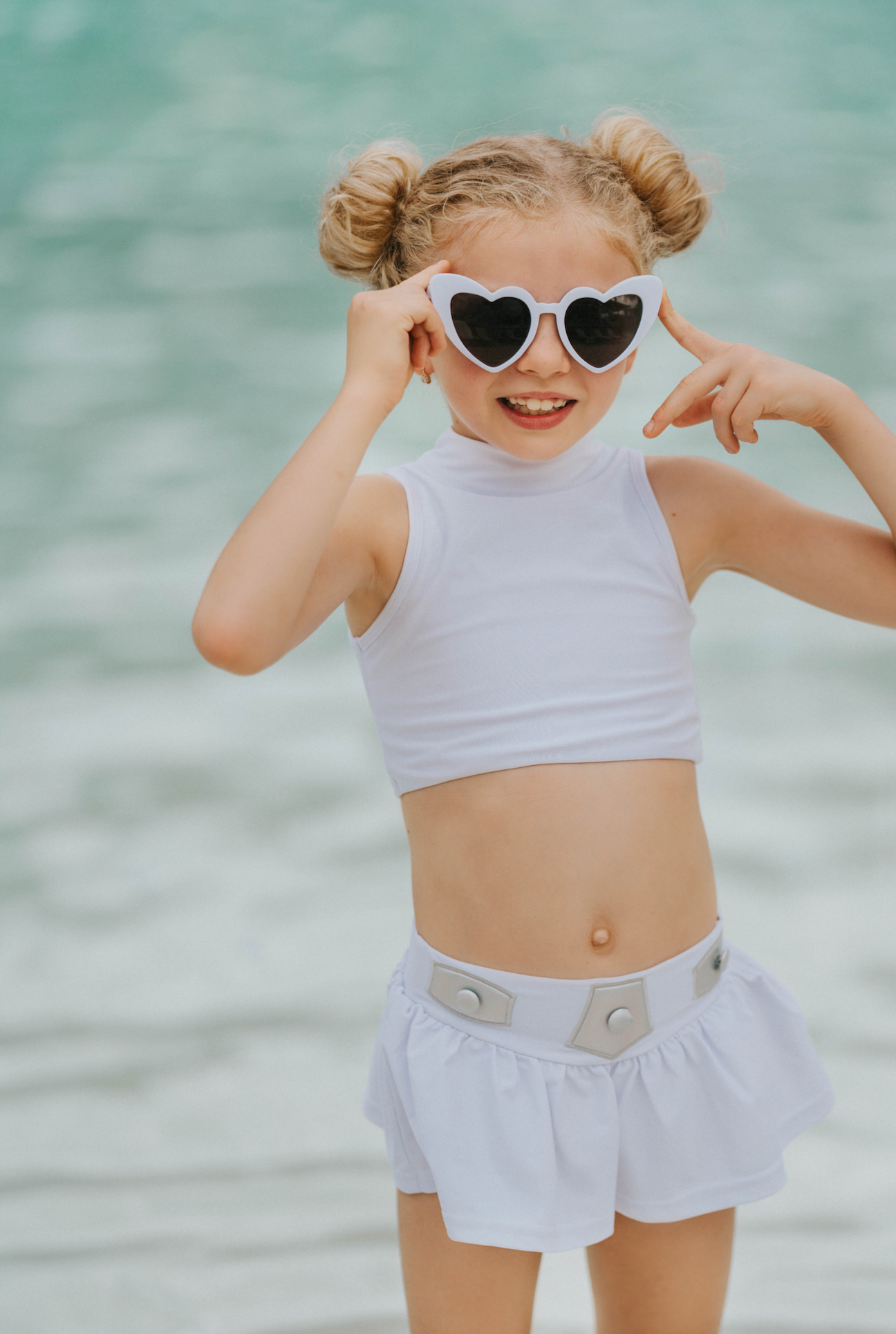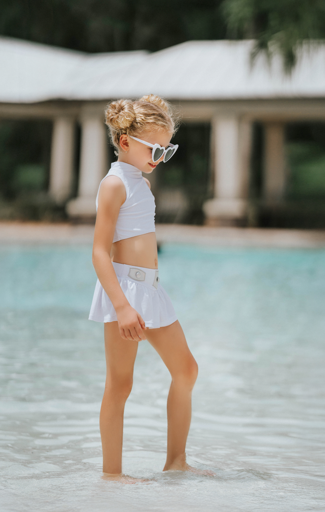 Let your little one make a splash in galactic style with our Space Princess Swim Set! Inspired by interstellar royalty, this two-piece swimsuit features a sleek high-neck crop top and a flouncy mini skirt bottom with futuristic button accents. The soft, stretchy fabric ensures all-day comfort and play-ready movement, whether at the beach, pool, or backyard. Perfect for bold, imaginative adventurers, this swim set is ideal for little fashionistas who dream of galaxies far, far away.