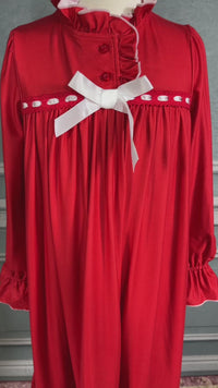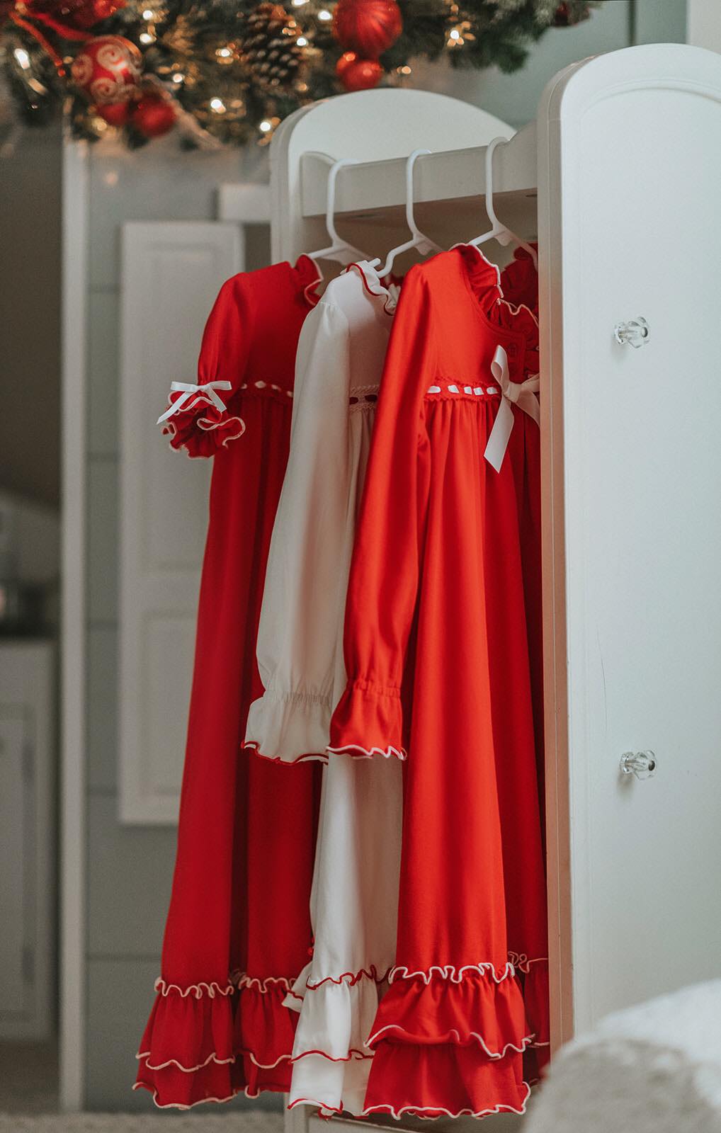 Conozca nuestro vestido de manga larga Clara en un nuevo color: rojo navideño con ribete blanco. Este vestido combina perfectamente con nuestros otros vestidos Clara, el vestido color ciruela y los pijamas unisex de dos piezas. ¡Los vestidos Clara están pensados para que los use de dos a tres años! Le recomendamos que compre la talla de pantalón habitual de su hijo.