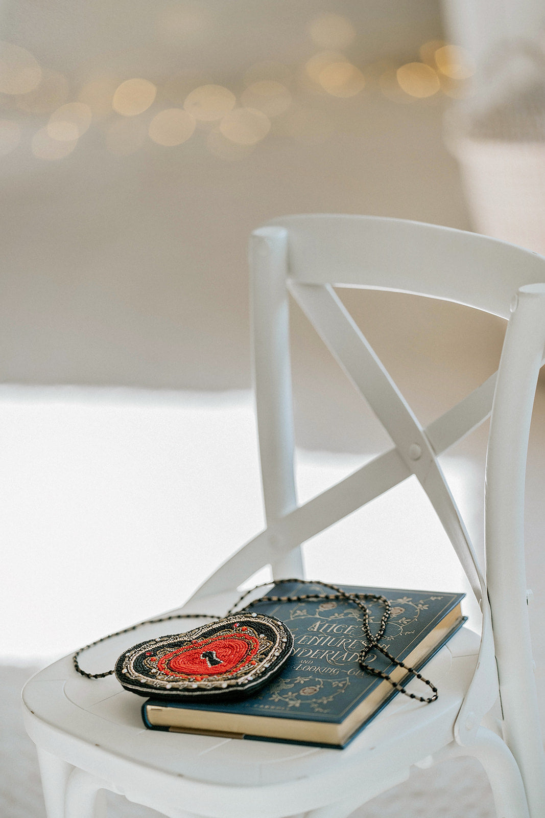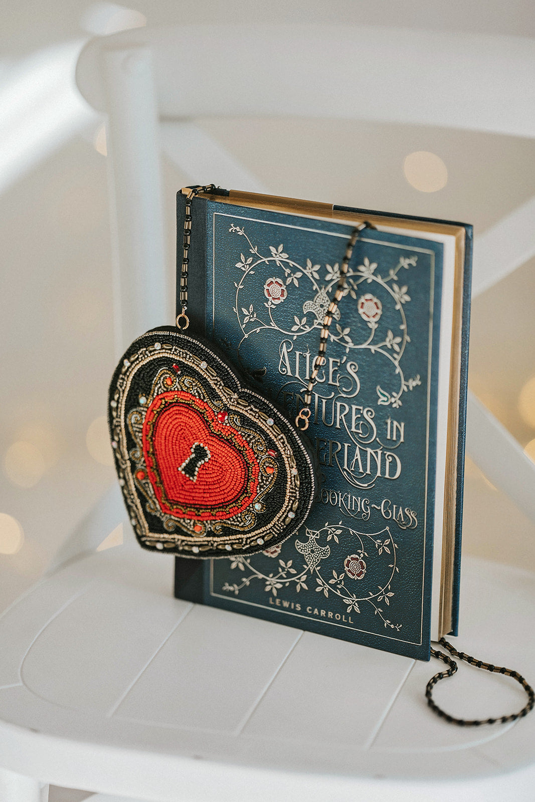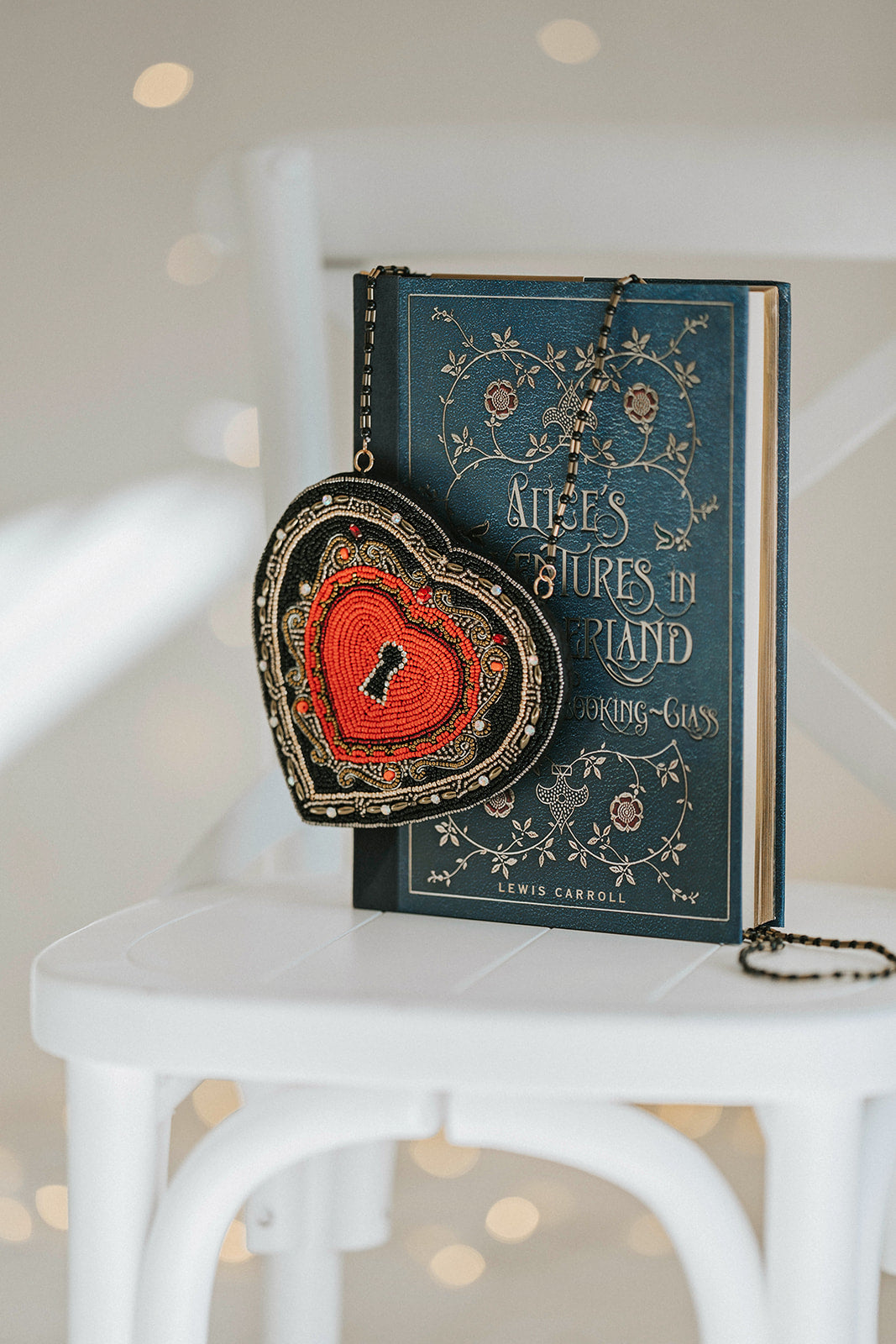 Whimsical, enchanting, and just a touch mysterious — this Beaded Heart Purse with Keyhole Detail is the ultimate statement accessory. Featuring intricate beading in classic red, black, and gold tones, this heart-shaped crossbody bag is the perfect piece for anyone who loves storybook fashion, gothic fairytales, or Valentine's magic.