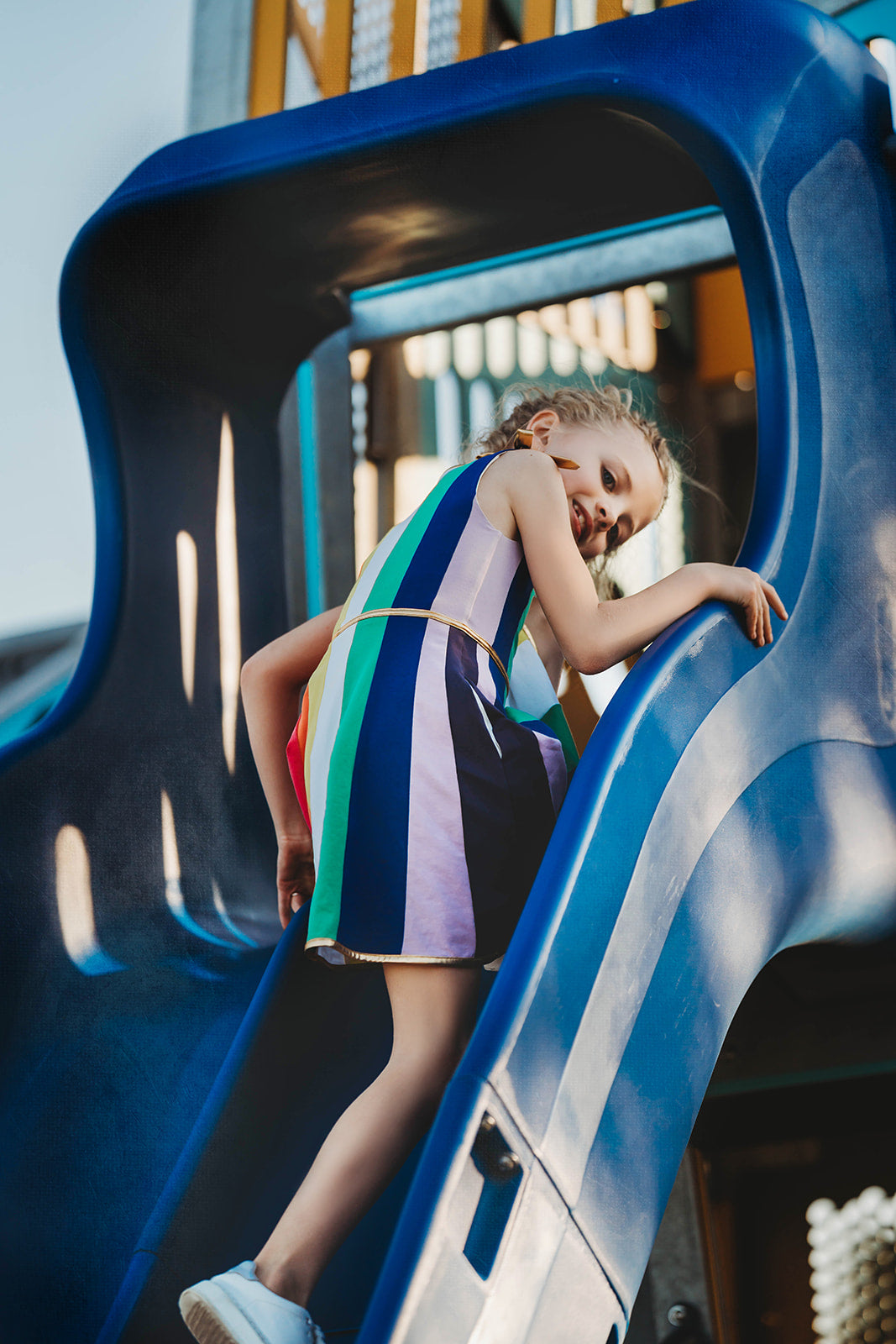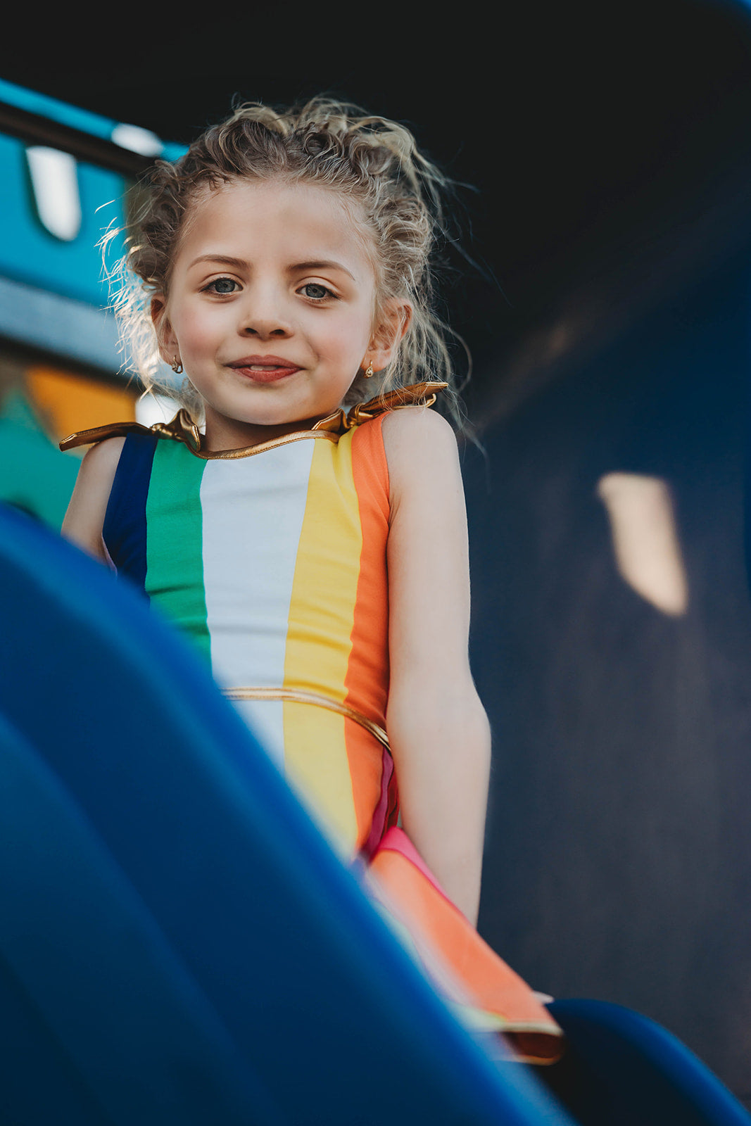 A gown inspired by all the colors of the rainbow, the perfect dress for all little girls who carry the desire to be a brave, strong woman and are not afraid to stand out!